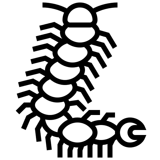 Centipède noir simplifié, infestation de parasites, contrôle des insectes, extermination de nuisibles, service professionnel en gestion des insectes.