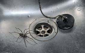 L’image montre un drain d’évier avec un insecte mort, un piège à insectes et des débris, illustrant nos interventions pour éliminer les nuisibles et assurer la propreté.